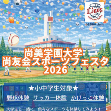 ★地域にお住まいの小中学生対象★ 大学生と一緒に、色々なスポーツを体験してみよう! 【開催概要】 日 時:2026年3月22日(日) 13:00~16:00 会 場:尚美学園大学(埼玉県川越市豊田町1-1-1) 野球場 […]