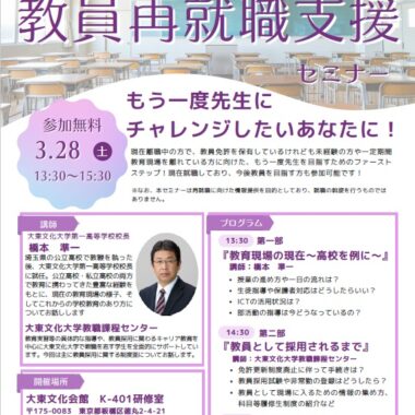 【大東文化大学】ペーパーティーチャー・ブランクのある先生のための「教員再就職支援セミナー」の開講について
