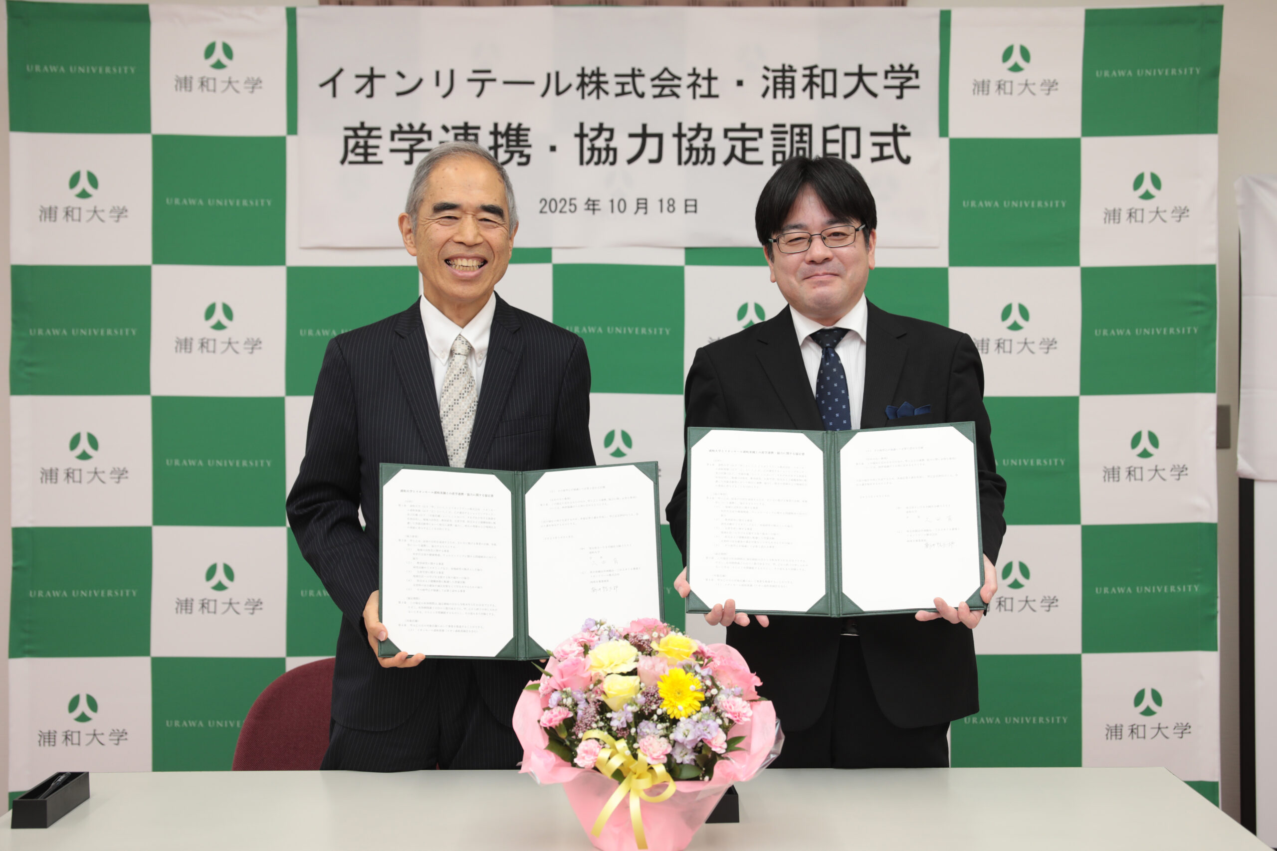大学情報2025.10.30 【浦和大学】 イオンリテールと地域共創へ連携 浦和大学(さいたま市緑区、久田有学長)は18日、イオンリテールと産学連携協定を締結した=写真。 同協定は実践的な教育推進や地域活性化に向けて、イオンモール浦和美園を主な拠点に価値ある場を共創。学びと暮らしが融合した持続可能な地域社会を目指す。 第1弾の取り組みとして本年度の冬に、同施設で学生主体の地域交流イベントを開催予定。今後は地域住民向けにリカレント教育講座の共同開発や、さいたま市の地域課題に対応する共同研究プロジェクトの発足など、中長期的な視点で活動していく。 新着情報一覧へ