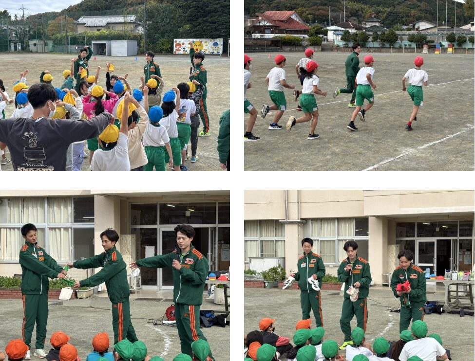 本学が包括連携協定を締結している埼玉県ときがわ町との連携事業の一環で、本学の陸上競技部(男子長距離)3名が11月11日(火)にときがわ町立明覚小学校で持久走指導を行いました。小学1~6年の全学年の皆さんへ、長距離走のフォームや呼吸の仕方のコツ、実際の大会で使用する襷やシューズ、ウェアの紹介なども交えて指導を行い、授業の最後には一緒に走りながら楽しく交流しました。