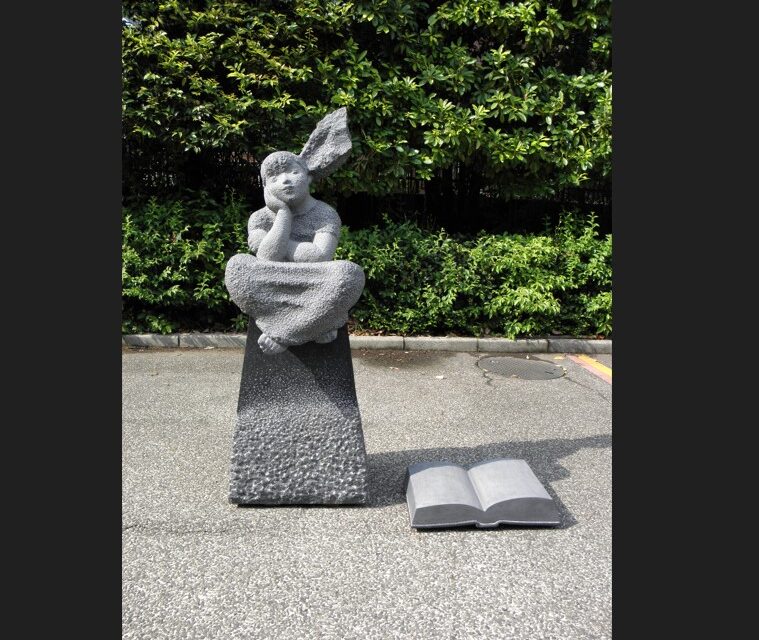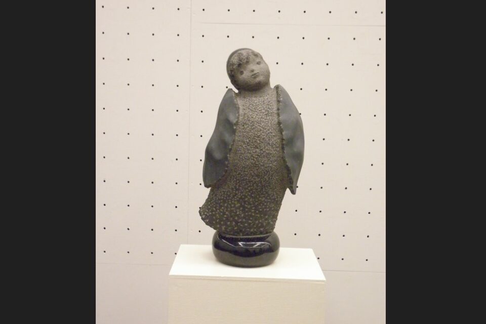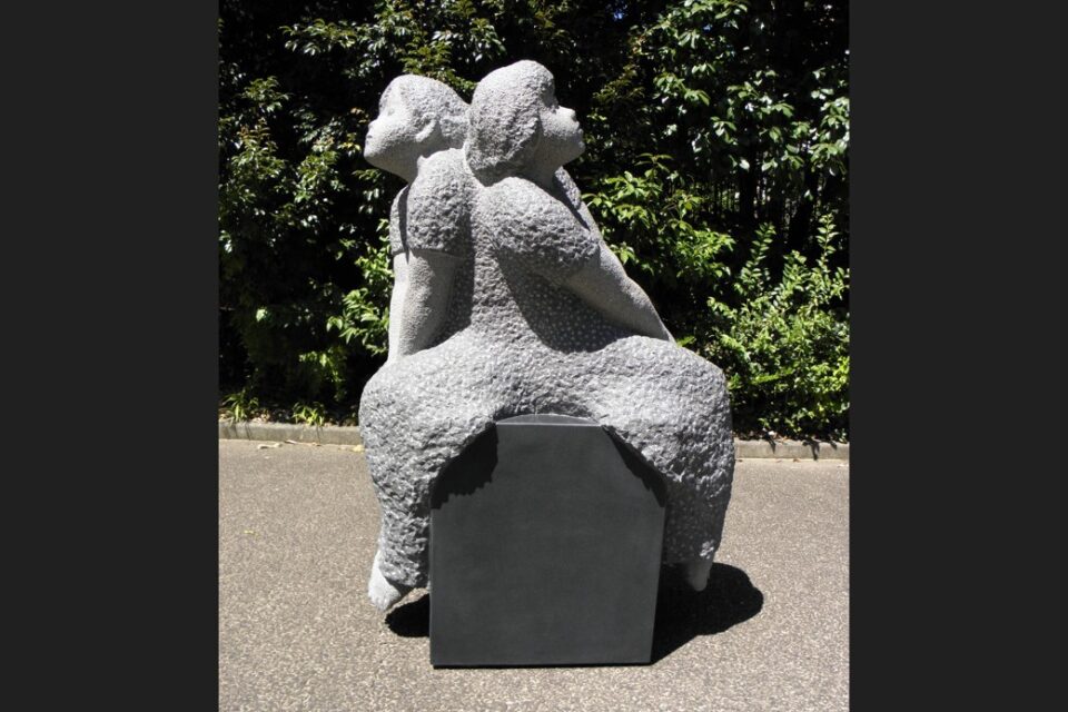 専門は石彫で、主に黒御影石を彫っています。作品のテーマは静かに佇む人物です。