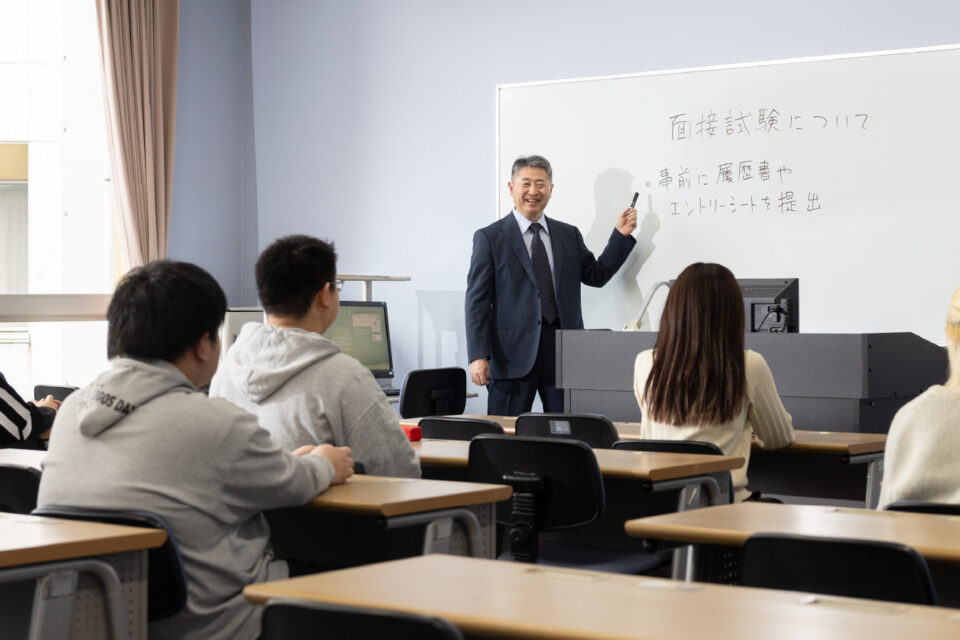 私は常に「学生が社会に出てから役立つ能力」を高めることを意識しながら学生指導をしています。社会に出た時に必要な文章力、コミュニケーション力、発想力、情報処理能力などの能力を一挙に高める手段として、ゼミで映像制作を教えています。就職指導にも力を入れています。