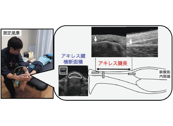 子どもが大人へと成長していくとき、私たちの身体には色々な変化が起きていきます。その中でも、特に、運動に関わる身体器官として、筋肉や腱の発育変化に着目し、運動や怪我との関連について、研究をおこなっています。主な研究結果として、アキレス腱は、思春期に強くバネとしての性質が向上することが示唆される結果や、オスグッド病などに代表される骨端症(いわゆる成長痛)の原因は、身体の成長し、骨が伸びることが大きな原因の一つとして考えられてきましたが、実際は、それよりもオーバーユースなど他の要因の影響が大きいことを示唆する結果を得ました。最近では、腱のバネとしての性質が運動の出来栄えにどのように影響を及ぼしているのか、に着目し、研究をおこなっています。