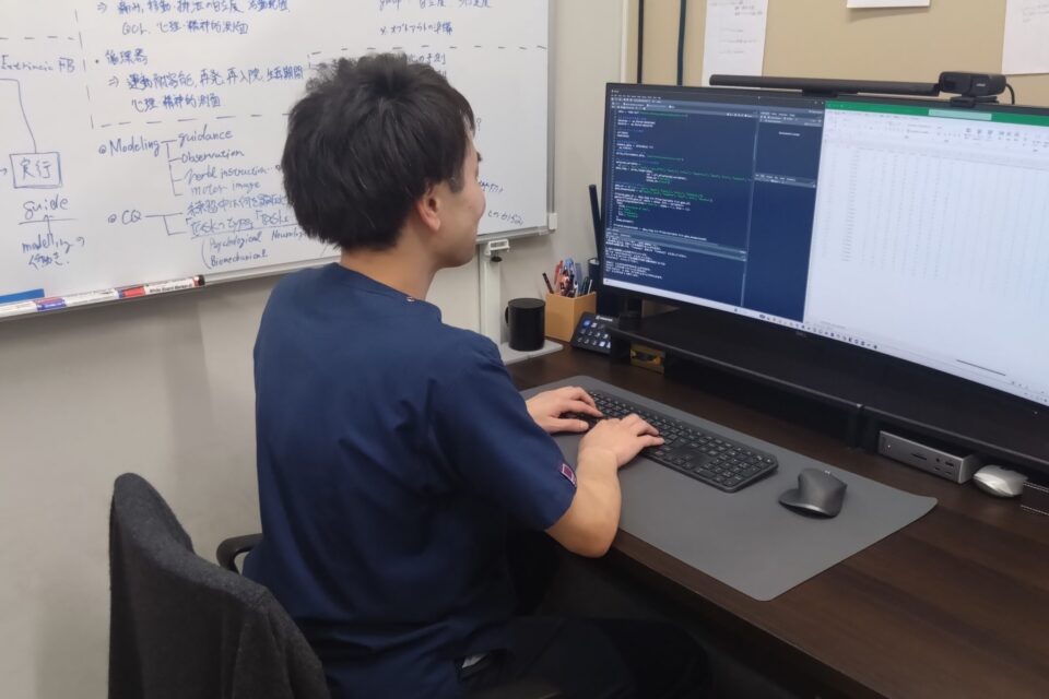 自転車に乗ることや箸を上手に使えるようになること,楽器の演奏やスポーツの特定の技能など,人はこれまで様々な運動を学習しています。疾病や怪我の影響でこれまでできていた運動が困難になった方に対して,指導や練習をサポートしていくのが理学療法士です。私はこの運動が学習される過程やその仕組みに興味があり,様々な学習方法を研究してきました。子供から高齢者,障害を持たれている方からそうでない方の運動の学習を効果的に支援することに,理学療法士としても研究者としても貢献しています。